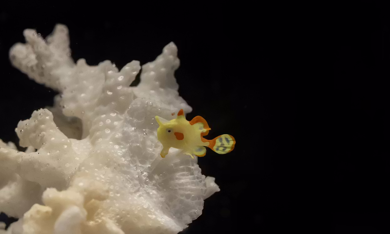 This tiny fish, named Domino, is only about the size of a pea, yet it represents a huge step forward in science. Earlier, baby frogfish could not survive in tanks, making this a rare and exciting success.